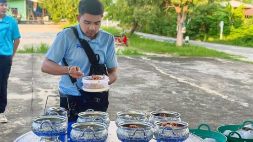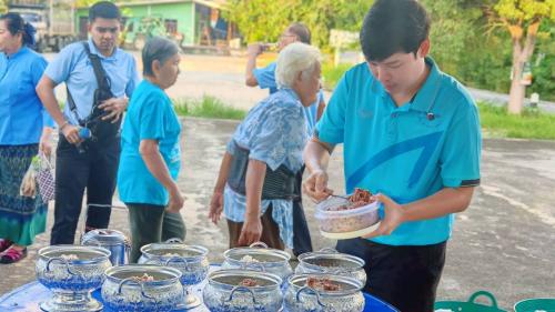 นางสาวลำพอง จันจุฬา พัฒนาการอำเภอทัพทัน พร้อมด้วยเจ้าหน้าที่พัฒนาชุมชนอำเภอทัพทัน เครือข่ายกองทุนแม่ของแผ่นดินอำเภอทัพทัน นายณัฐพงศ์ แก้วมณี กำนันตำบลหนองและประชาชนบ้านดงหนองไทร หมู่ที่ 3 ตำบลหนองสระ ร่วมทำบุญตักบาตรและพิธีแลกเงินพระราชทานเงินขวัญถุงกองทุนแม่ของแผ่นดิน ประจำปี 2568 ณ ศาลาสร้างสุข บ้านดงหนองไทร หมู่ที่ 3 ตำบลหนองสระ อำเภอทัพทัน จังหวัดอุทัยธานี